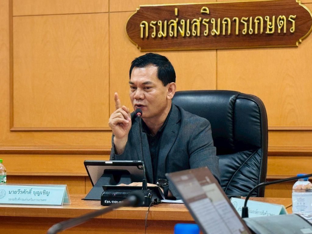 วันที่ 22 มกราคม 2569 นางศันสนีย์ เกษตรสินสมบัติ ผู้อำนวยการกองส่งเสริมการอารักขาพืชและจัดการดินปุ๋ย พร้อมด้วยเจ้าหน้าที่กลุ่มพยากรณ์และเตือนการระบาดศัตรูพืช จัดประชุมชี้แจงแนวทางการตรวจประเมินแปลงส่งเสริมมันสำปะหลังพันธุ์ดี (ธนาคารท่อนพันธุ์ชุมชน) ภายใต้โครงการทดสอบและถ่ายทอดเทคโนโลยีเพื่อเพิ่มผลิตภาพการผลิตสินค้าเกษตร กิจกรรมทดสอบและถ่ายทอดเทคโนโลยีเพื่อเพิ่มผลิตภาพการผลิตสินค้าเกษตร (มันสำปะหลัง) เป็นการบูรณางานร่วมกับสำนักส่งเสริมและจัดการสินค้าเกษตร เพื่อชี้แจงแนวทางการบูรณาการโครงการฯ ก่อนการเก็บเกี่ยวด้วยสายตาและการสุ่มเก็บตัวอย่างเพื่อตรวจวิเคราะห์หาเชื้อสาเหตุโรคใบด่างจากห้องปฏิบัติการ ให้กับเจ้าหน้าที่กลุ่มอารักขาพืช เจ้าหน้าที่กลุ่มส่งเสริมและพัฒนาการผลิต เจ้าหน้าที่ส่งเสริมการเกษตรระดับอำเภอ จำนวน 44 จังหวัด เพื่อให้การดำเนินโครงการบรรลุวัตถุประสงค์และเป็นไปในแนวทางเดียวกัน โดยมี นายวีรศักดิ์ บุญเชิญ รองอธิบดีกรมส่งเสริมการเกษตร เป็นประธานการประชุม ณ ห้องประชุม 4/2 ชั้น 4 อาคาร 1 กรมส่งเสริมการเกษตร และผ่านระบบ Zoom meeting