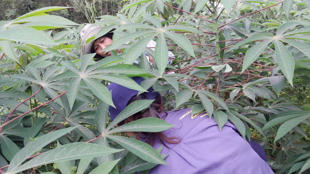 วันที่ 17 – 19 กันยายน 2568 นางดวงสมร พฤฑฒิกุล ผู้อำนวยการกองส่งเสริมการอารักขาพืชและจัดการดินปุ๋ย มอบหมายเจ้าหน้าที่กลุ่มพยากรณ์และเตือนการระบาดศัตรูพืช ติดตามผลดำเนินการศึกษาทดสอบการใช้เทคโนโลยี ในการควบคุมแมลงหวี่ขาวยาสูบในแปลงปลูกมันสำปะหลัง ซึ่งเป็นกิจกรรมศึกษาการประยุกต์ใช้เทคโนโลยีการจัดการสุขภาพพืชให้มีประสิทธิภาพในสภาพพื้นที่และเหมาะสมกับการปฏิบัติของเกษตรกร (appropriate technology) ประจำปีงบประมาณ พ.ศ. 2568 ร่วมกับศูนย์ส่งเสริมเทคโนโลยีการเกษตรด้านอารักขาพืช จังหวัดนครราชสีมา (ศทอ.นครราชสีมา) โดยการทดสอบอยู่ระหว่างการสุ่มตรวจนับแมลงหวี่ขาวยาสูบและประเมินอัตราการเกิดโรคใบด่าง ภายหลังจากพ่นสารจำนวน 5 ครั้ง ที่มันสำปะหลังอายุ 5 เดือน พบแมลงหวี่ขาวยาสูบในแปลงระยะตัวอ่อน และระยะตัวเต็มวัยลดลงจากเดือนที่ผ่านมา และพบอาการของโรคใบด่างคงที่ ทั้งนี้ มีแผนดำเนินการเก็บเกี่ยวผลผลิต (ตรวจสอบน้ำหนักหัวมันสำปะหลัง และ %แป้ง) ในเดือนมกราคม 2569 ที่มันสำปะหลังอายุ 9 เดือน