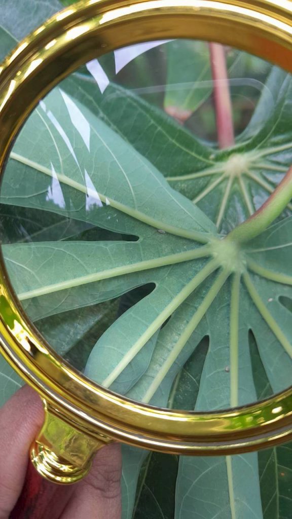 ด้านอารักขาพืช จังหวัดนครราชสีมา (ศทอ.นครราชสีมา) โดยการทดสอบอยู่ระหว่างการสุ่มตรวจนับแมลงหวี่ขาวยาสูบและประเมินอัตราการเกิดโรคใบด่าง ที่มันสำปะหลังอายุ 4 เดือน