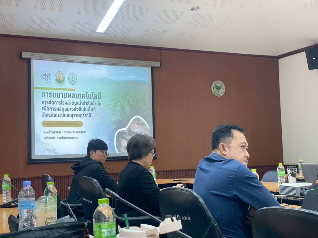 วันที่ 31 มีนาคม 2569 นางสาวจุฬาภรณ์ นกสกุล ผู้อำนวยการกลุ่มส่งเสริมการวินิจฉัยศัตรูพืช และนางสาวกนิษฐา วรรณชาติ ผู้อำนวยการกลุ่มส่งเสริมการควบคุมศัตรูพืชโดยเทคโนโลยีรังสี กองส่งเสริมการอารักขาพืชและจัดการดินปุ๋ย ร่วมกับกรมวิชาการเกษตร ประชุมวางแผนการดำเนินโครงการวิจัย ณ ห้องประชุมศูนย์วิจัยปาล์มน้ำมันสุราษฎร์ธานี กรมวิชาการเกษตร จังหวัดสุราษฎร์ธานี โดยมีเจ้าหน้าที่จากศูนย์ส่งเสริมเทคโนโลยีการเกษตรด้านอารักขาพืช จังหวัดสงขลา กลุ่มอารักขาพืช สำนักงานเกษตรจังหวัดกระบี่ และสำนักงานเกษตรจังหวัดสุราษฎร์ธานี เข้าร่วมให้ข้อมูลและแลกเปลี่ยนความคิดเห็น เพื่อกำหนดแนวทางการดำเนินงานให้สอดคล้องกับสภาพปัญหาในพื้นที่