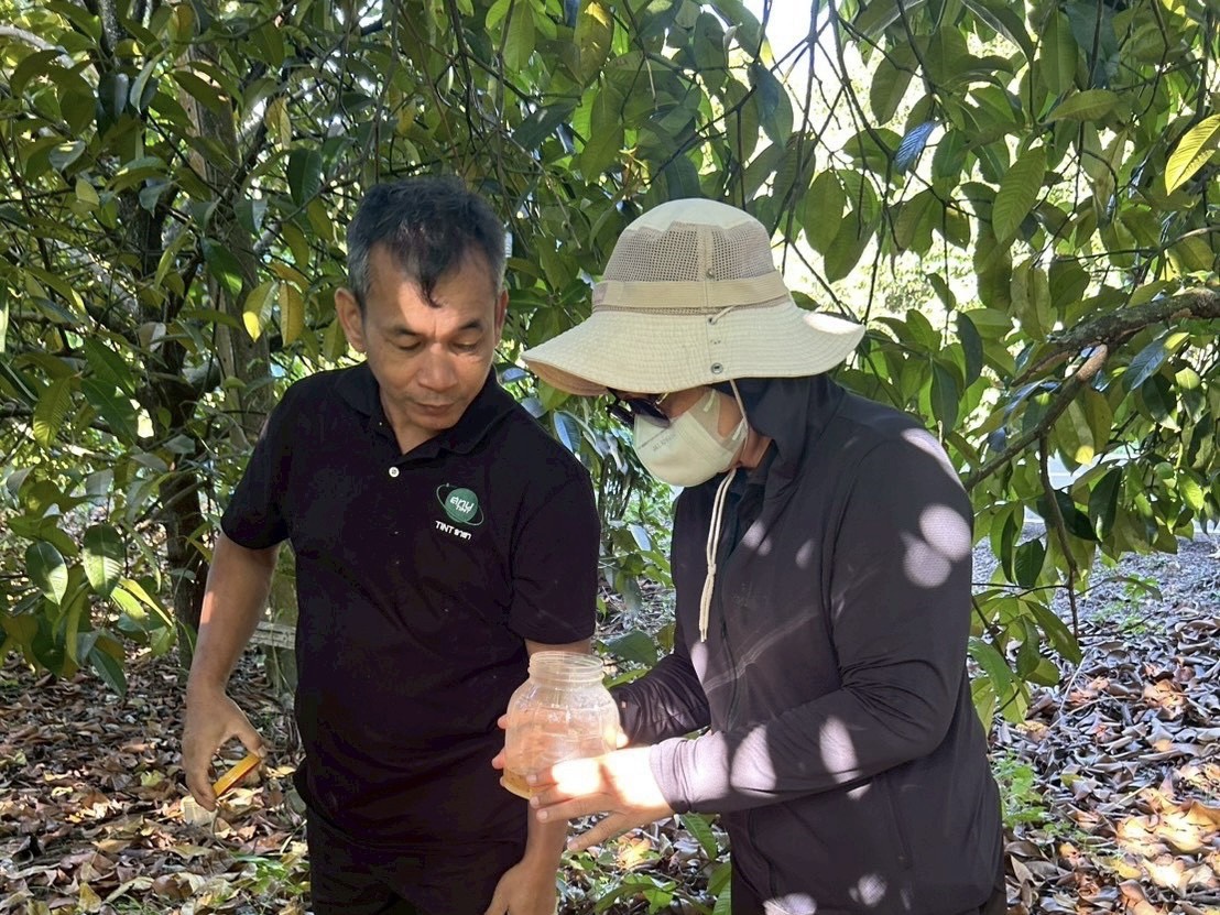 วันที่ 7-9 มกราคม 2569 ผู้อำนวยการกองส่งเสริมการอารักขาพืชและจัดการดินปุ๋ย มอบหมายให้เจ้าหน้าที่กลุ่มส่งเสริมการควบคุมศัตรูพืชโดยเทคโนโลยีรังสี ลงพื้นที่ติดตามการดำเนินงานโครงการส่งเสริมการจัดการสุขภาพพืชฯ และสถานการณ์แมลงวันผลไม้ ในพื้นที่ควบคุมประชากรแมลงวันผลไม้ ณ ตำบลตรอกนอง อำเภอขลุง จังหวัดจันทบุรี โดยดำเนินงานร่วมกับเจ้าหน้าที่สำนักงานเกษตร จังหวัดจันทบุรี เกษตรกรในพื้นที่ และสถาบันเทคโนโลยีนิวเคลียร์แห่งชาติ (องค์การมหาชน) เพื่อลดจำนวนประชากรแมลงวันผลไม้ และร่วมแลกเปลี่ยนความคิดเห็นเกี่ยวกับ ปัญหา อุปสรรค และข้อเสนอแนะในการควบคุมประชากรแมลงวันผลไม้ในพื้นที่ต่อไป