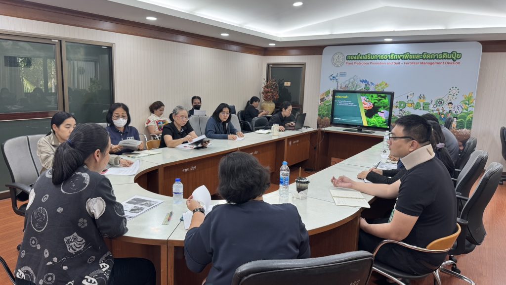 ในการดำเนินงาน เรื่อง แนวทางการเฝ้าระวังและติดตามสถานการณ์การระบาดศัตรูพืชแบบเชิงรุก (ActiveSurveillance) เพื่อนำข้อมูลมาวิเคราะห์ และนำไปใช้ในการพัฒนากระบวนการเฝ้าระวังและติดตามสถานการณ์การระบาดศัตรูพืชแบบเชิงรุกต่อไป ณ ห้องประชุมกองส่งเสริมการอารักขาพืชและจัดการดินปุ๋ย ชั้น 2 อาคาร 5 กรมส่งเสริมการเกษตร