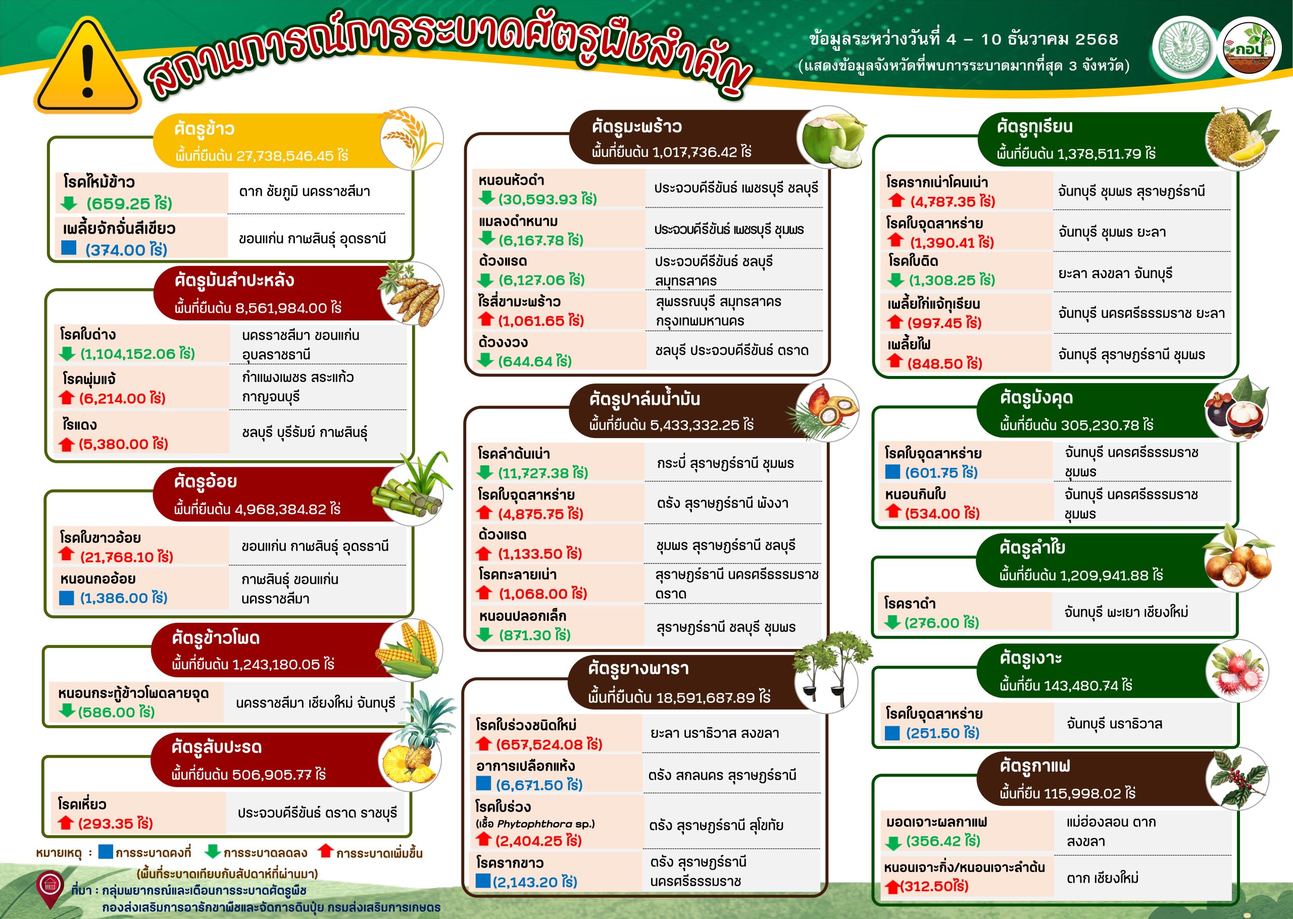 สรุปสถานการณ์การระบาดศัตรูพืชสำคัญ ระหว่างวันที่ 4 – 10 ธันวาคม 2568By กพต. / 15 ธันวาคม 2025 สรุป-4-10-ธ.ค.-68ดาวน์โหลด Post Views: 59