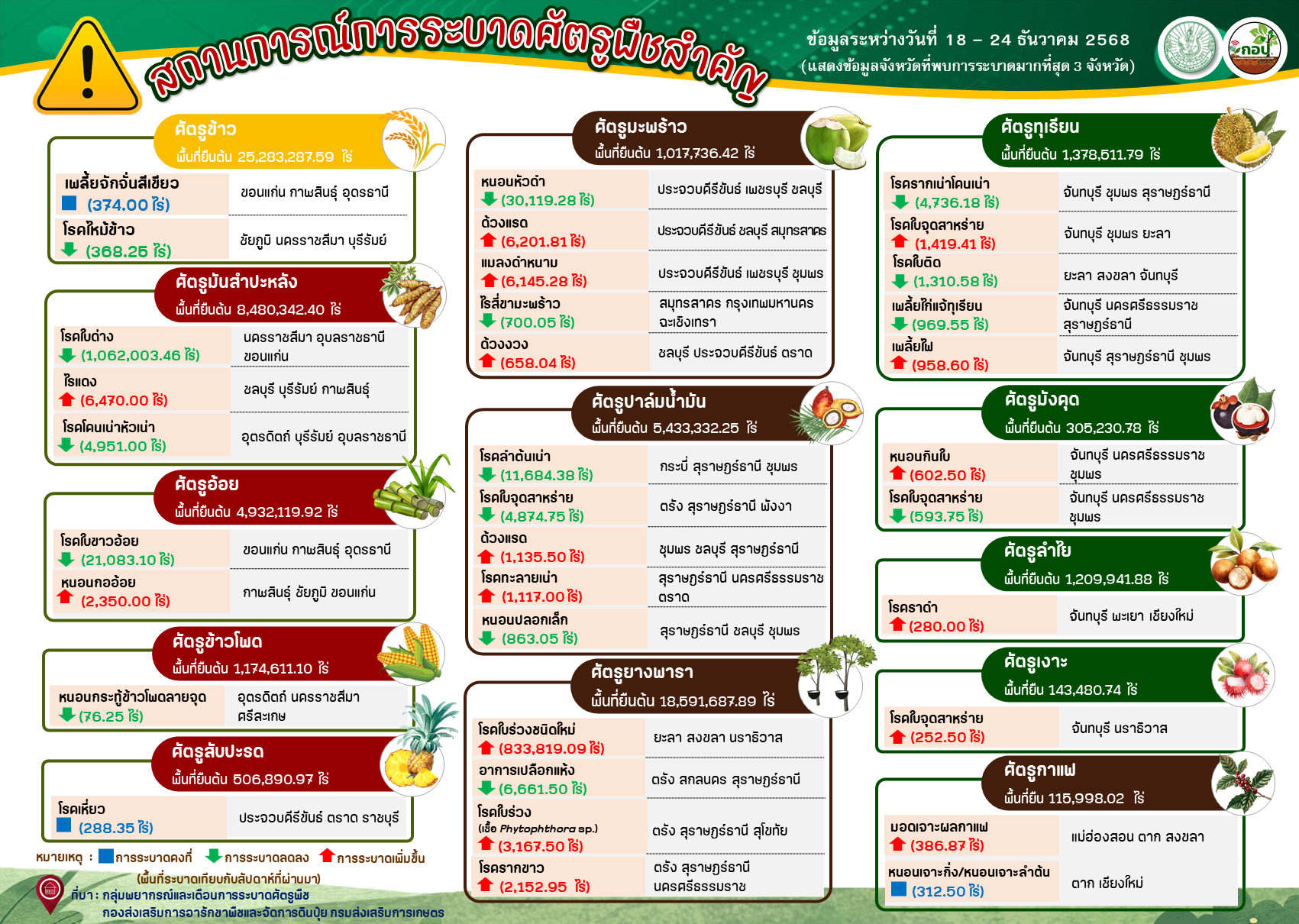 สรุปสถานการณ์การระบาดศัตรูพืชสำคัญ ระหว่างวันที่ 18 – 24 ธันวาคม 2568By กพต. / 30 ธันวาคม 2025 สรุป-18-24-ธ.ค.-68ดาวน์โหลด Post Views: 37