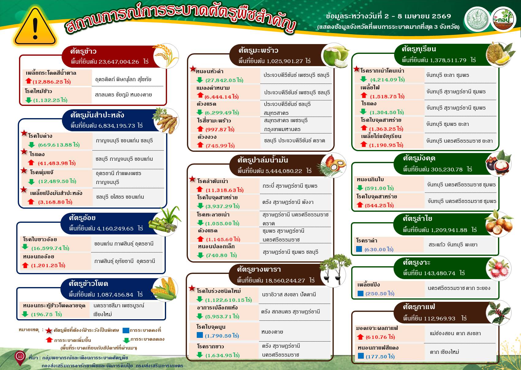 สรุปสถานการณ์การระบาดศัตรูพืชสำคัญ ระหว่างวันที่ 2 – 8 เมษายน 2569By กพต. / 10 เมษายน 2026 สรุป-2-8-เม.ย.-69-2ดาวน์โหลด Post Views: 14