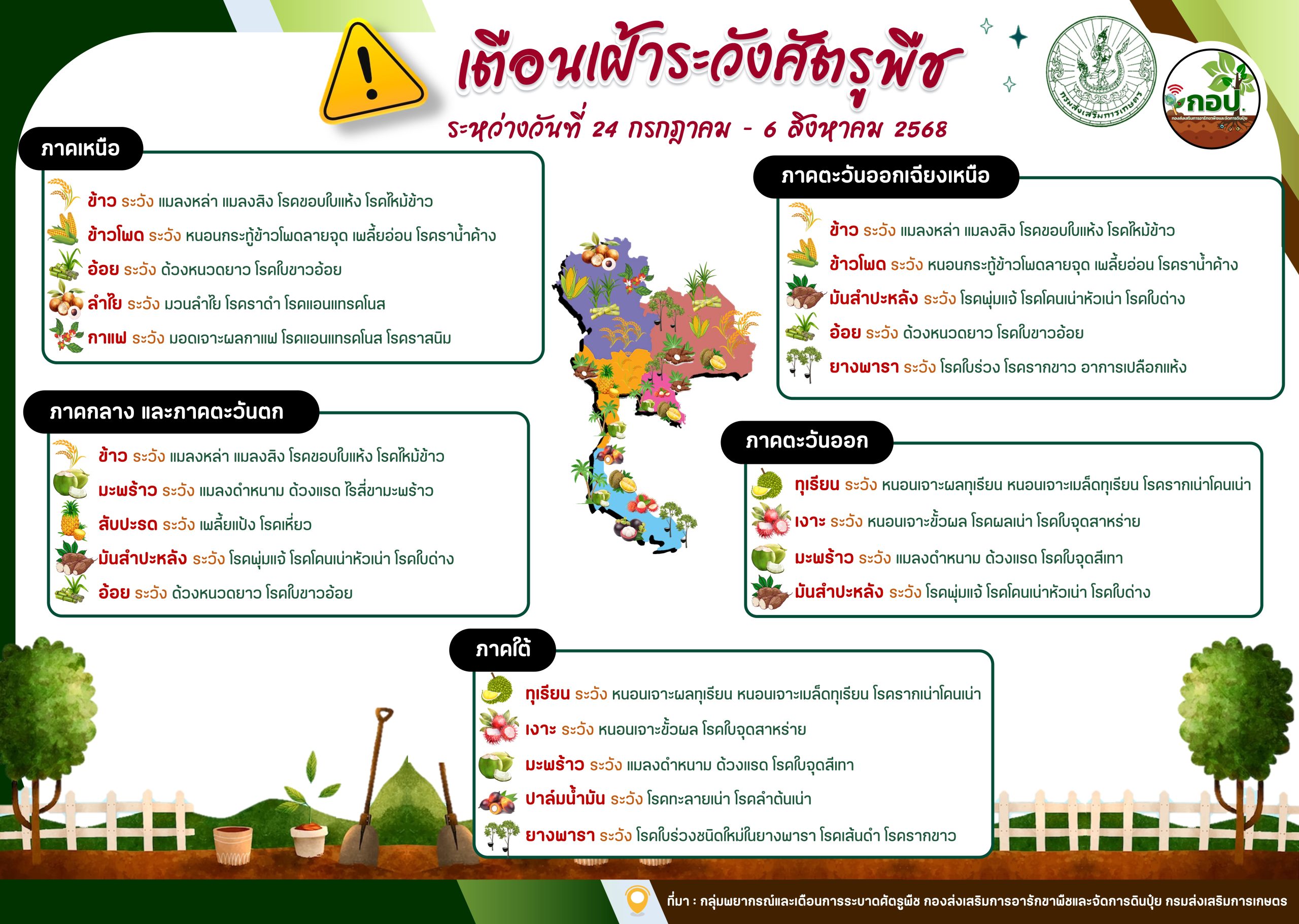 เตือนเฝ้าระวังศัตรูพืช ระหว่างวันที่ 23 -29 พฤษภาคม 2567 เตือนเฝ้าระวังศัตรูพืชประจำสัปดาห์ / By กพต.