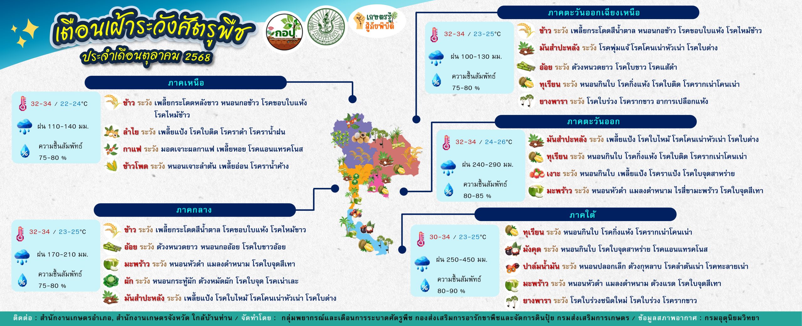 เตือนเฝ้าระวังศัตรูพืช ประจำเดือนตุลาคม 2568By กพต. / 1 ตุลาคม 2025 10-เตือนการระบาด_-ต.ค.-68ดาวน์โหลด Post Views: 108